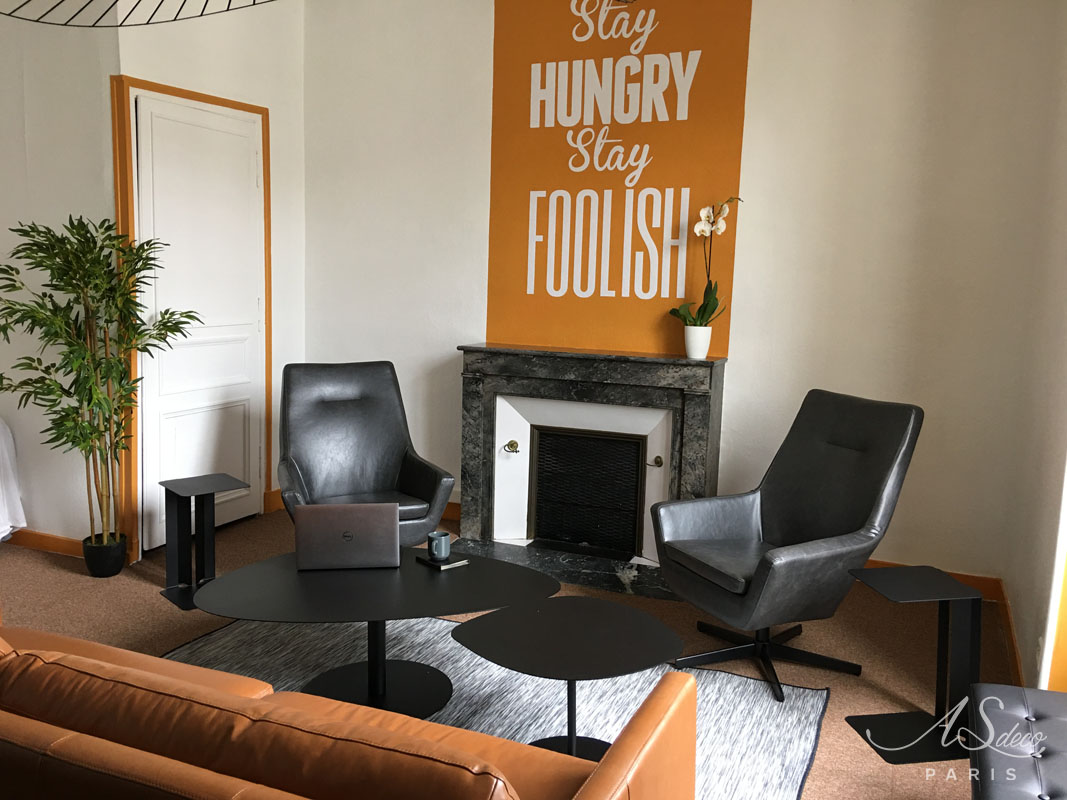 Nous avons accompagné la start-up parisienne Allo Media lors de son emménagement dans ses locaux au Mans. L’équipe composée de chercheurs en R&D avait besoin d’un espace convivial où réaliser des réunions informelles.